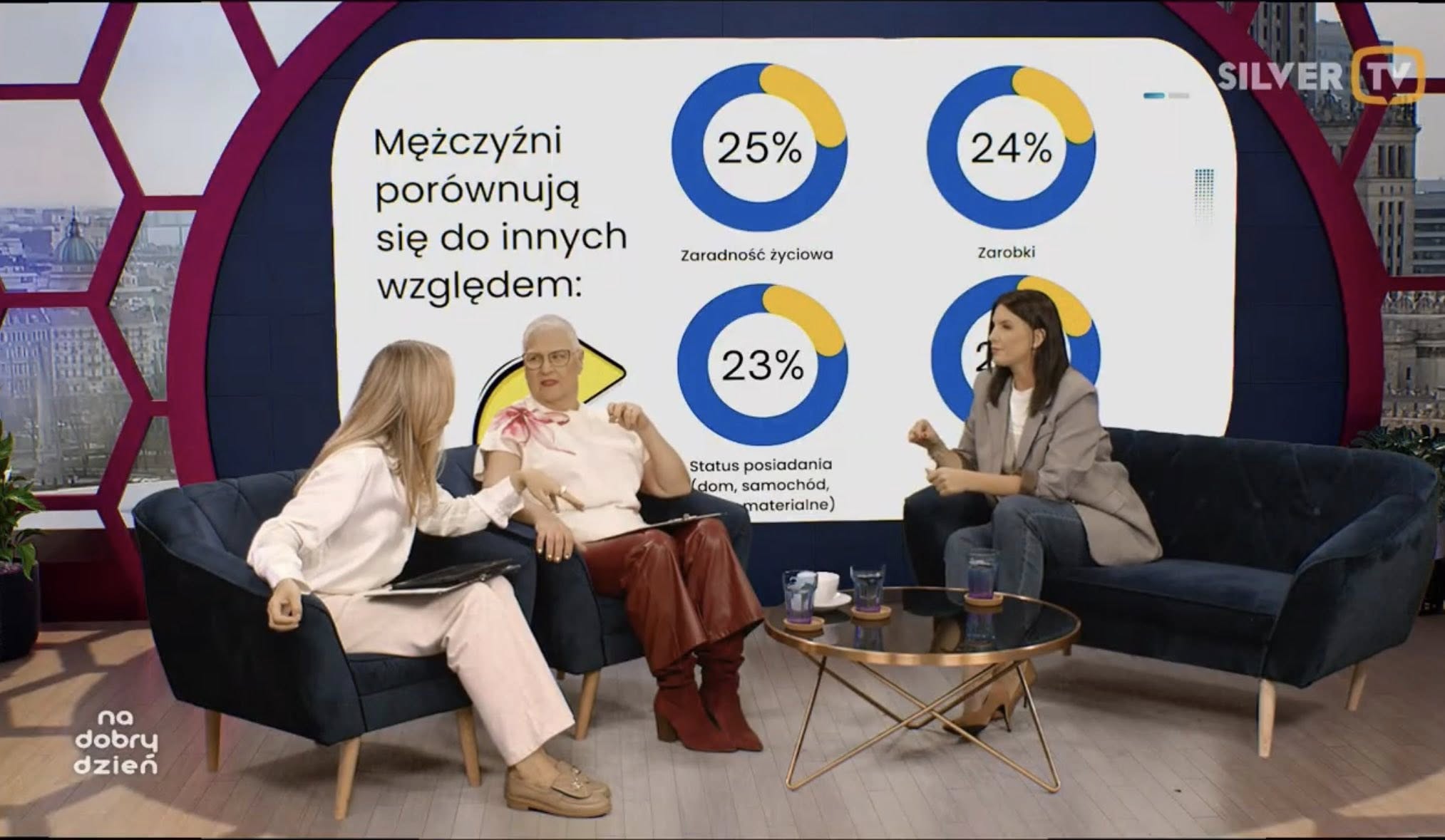 Na zaproszenie redakcji programu „Na dobry dzień” emitowanego w Silver TV Ilona Adamska, prezes Fundacji „W zgodzie ze sobą” i wydawczyni naszego portalu, gościła w studiu telewizji, aby na żywo opowiedzieć o wynikach najnowszych badań dotyczących emocji i presji odczuwanej przez mężczyzn. Wizyta stanowiła część działań prowadzonych w ramach Kampanii „Nie hejtuję – motywuję”, której celem jest zwiększanie świadomości dotyczącej emocjonalnych potrzeb mężczyzn oraz edukacja w zakresie konstruktywnej komunikacji.
